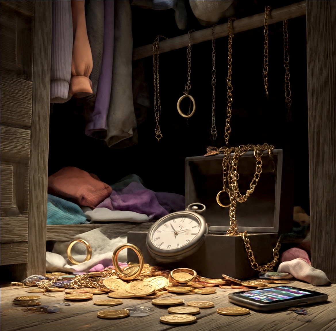 Hides medications or medical supplies, making it unclear what's being given or used.
